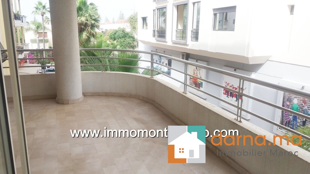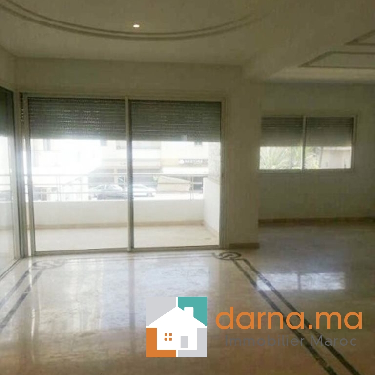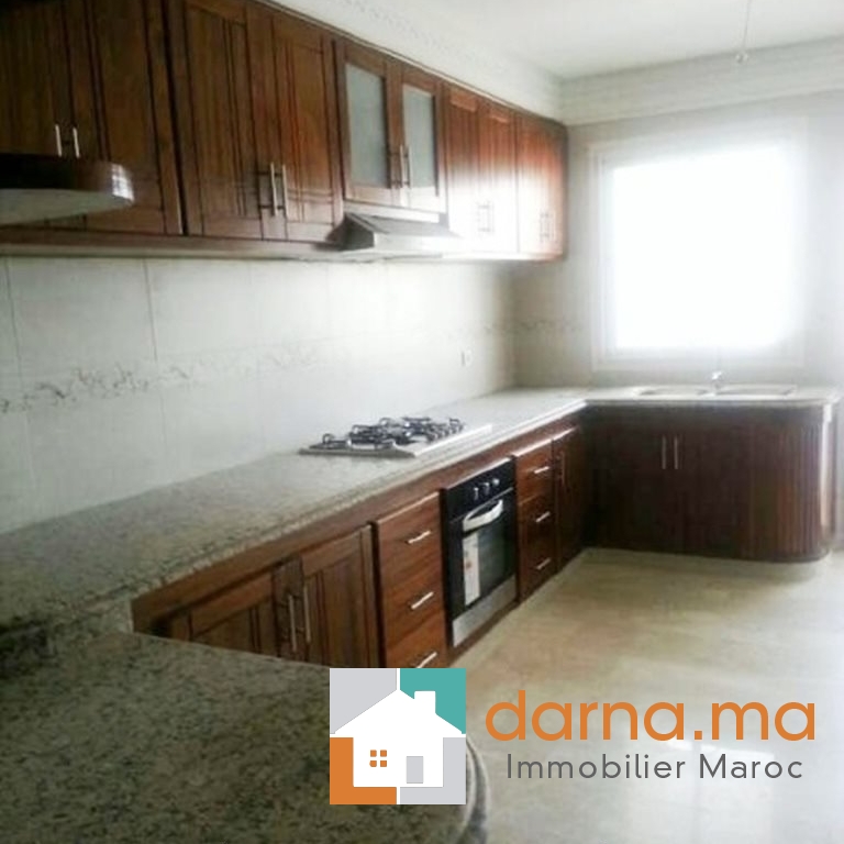 Location appartement  à Rabat Hay Riad, avec  une grande terrasse, appartement toute climatisé et calme, ensoleillé et bien aéré et sécurisé  situé dans un immeuble neuf avec ascenseur, garage automatique,  et comprenant 3 chambres à coucher, 2salles de bain (jacuzzi et douche),  double salon avec cheminée, salle d’eau des invités, une buanderie et cuisine équipée par une plaque cuisante avec la hotte et un four, .. .