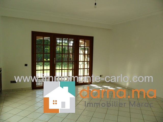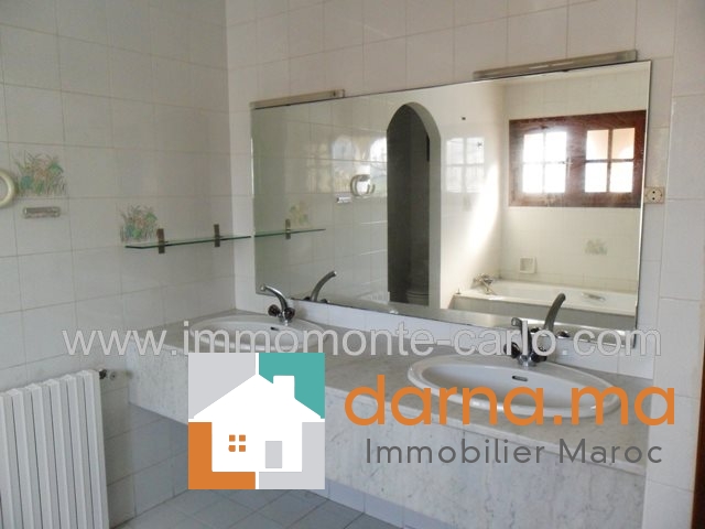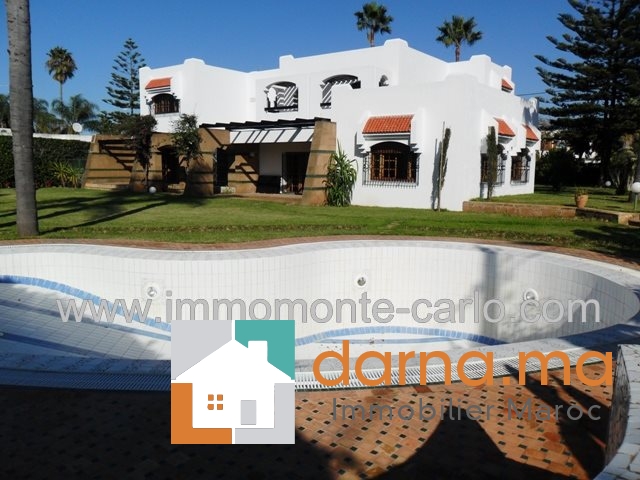 Superbe villa  avec piscine et chauffage central à Souissiconstruite sur 2 niveaux composée RDC 1chambres avec sdb, 2salons avec cheminée, donnant sur terrasse, WC, cuisine, à l’étage 4 chambres3 salles de bain et  terrasse,garage et logement de gardien, jardin bien entretenue et puits. Villa très bien située et bien sécurisée. Pour plus d’informations ou visite n’hésitez pas de contacter notre agence immobilière Immo Monte-Carlo au N° de tél: +212661464037/ +212661212547 ou Tél/Fax: +212537755043 ou par E-mail : Cette adresse e-mail est protégée contre les robots spammeurs. Vous devez activer le JavaScript pour la visualiser. ou visitez notre site www.immomonte-carlo.com ou  rendez-vous au 15, Av. Al Abtal N°4, Agdal RABAT MAROC.