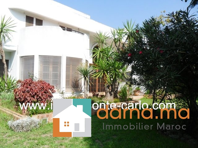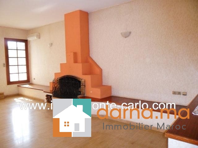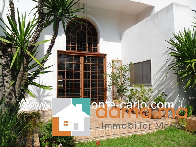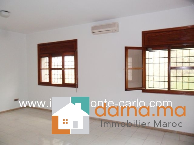 A louer villa Rabat/Souissi, Cette villa est située dans une région résidentielle , elle offre de l'intimité la tranquillité et le bon voisinage, un très beau jardin  paysagé et arboré, villa bien ensoleillée avec climatisation réversible dans toutes les pièces, construite sur 2 niveaux Rez de : Double salons, un coin cheminée une grande terrasse et un séjour le tout avec  une vue merveilleuse sur le jardin, chambre d’amis avec salle de bain, WC pour les invités et une cuisine avec buanderie, logement de personnel, grand garage,…