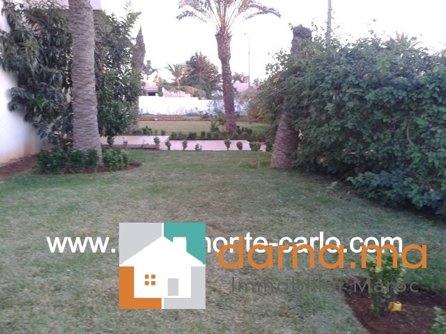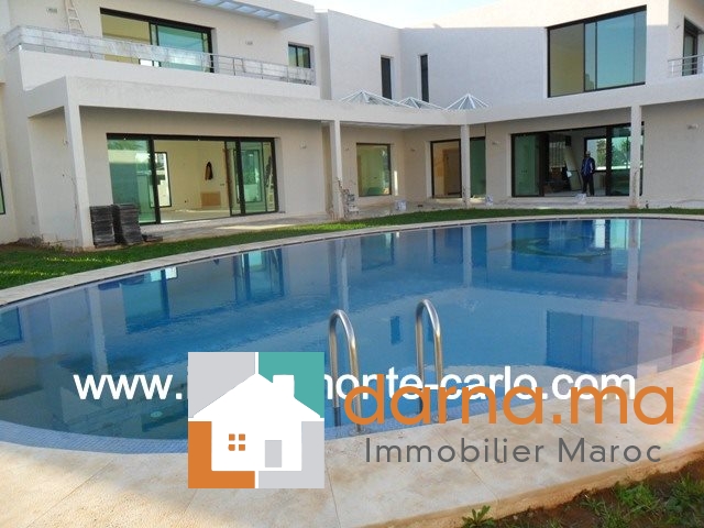 À louer à Rabat villa d’architecture moderne haut standing avec piscine chauffage, villa très propre. Villa entourée d'un beau jardin avec  puit,  jolie piscine, grand garage, logement de gardien, construite sur 3 niveaux et composée de: Rez de chaussée spacieux et lumineux  avec terrasse donnant sur la piscine et le jardin, comprenant  triple salons, coin cheminée moderne, séjour avec cheminée, WC des invités, chambre d’amis avec salle de bain et une terrasse donnant sur la piscine et le jardin,  cuisine neuve équipée moderne. Étage: suite parental avec dressing, salle de bain et grande terrasse, 3 chambres à coucher  chacune avec sa salle de bain et dressing et terrasse privée, Sous-sol : hammam marocaine, douche, WC, chambre et salon, débarras,buanderie, logement de personnel….Pour plus d’informations n’hésitez pas de contacter notre agence immobilière Immo Monte-Carlo au N° de tél: +212661464037 +212661212547 ou Tél / Fax:+212537755043 ou  par E-mail : Cette adresse e-mail est protégée contre les robots spammeurs. Vous devez activer le JavaScript pour la visualiser. ou www.immomonte-carlo.com ou rendez-vous au 15. Av, Al Abtal N°4,  Agdal RABAT MAROC.