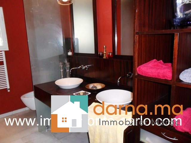 À louer villa bien meublée à Rabat Hay Riad.Dans un environnement privilégié,  belle villa bénéficiant de prestations luxueuses, avec piscine, chauffage central, climatisation réversibles dans toutes les pièces,Situé sur une rue tranquille en plein cœur d’un quartier branché et résidentiel : grandes surfaces, restos, cafés, boutiques, épiceries, services, agences de voyage, pharmacies, salles de sport, musique et danse, rues piétonnes bordée de terrasses, où l'on apprécie se promener avec les enfants dans la journée ou les soirs d'été. Villa construite sur 3 niveaux avec un beau jardin avec mobilier de terrasse et grand  garage, comprenant double salons avec un coin cheminée, une terrasse couverte offrant une superbe vue sur la piscine et le jardin ,un séjour lumineux, une salle à manger, salle d’eau des invités,  une suite parentale avec dressing et salle de bain avec jacuzzi, grande terrasse  3chambres à coucher chacune avec sa salle de bain et balcons, une cuisine bien équipée (réfrigérateur, congélateur, plaques vitro, four, ..), internet haute vitesse, ameublement, literie, lave-vaisselle, laveuse-sécheuse…… buanderie,  logement de personnel, débarras, à louer pour longue durée,Pour plus d’informations ou visite n’hésitez pas de contacter notre agence immobilière Immo Monte-Carlo au N° de tél: +212661464037/ +212661212547ou Tél/Fax: +212537755043 ou par E-mail : Cette adresse e-mail est protégée contre les robots spammeurs. Vous devez activer le JavaScript pour la visualiser. ou visitez notre site www.immomonte-carlo.com ou  rendez-vous au 15. Av, Al Abtal N°4,  Agdal Rabat.